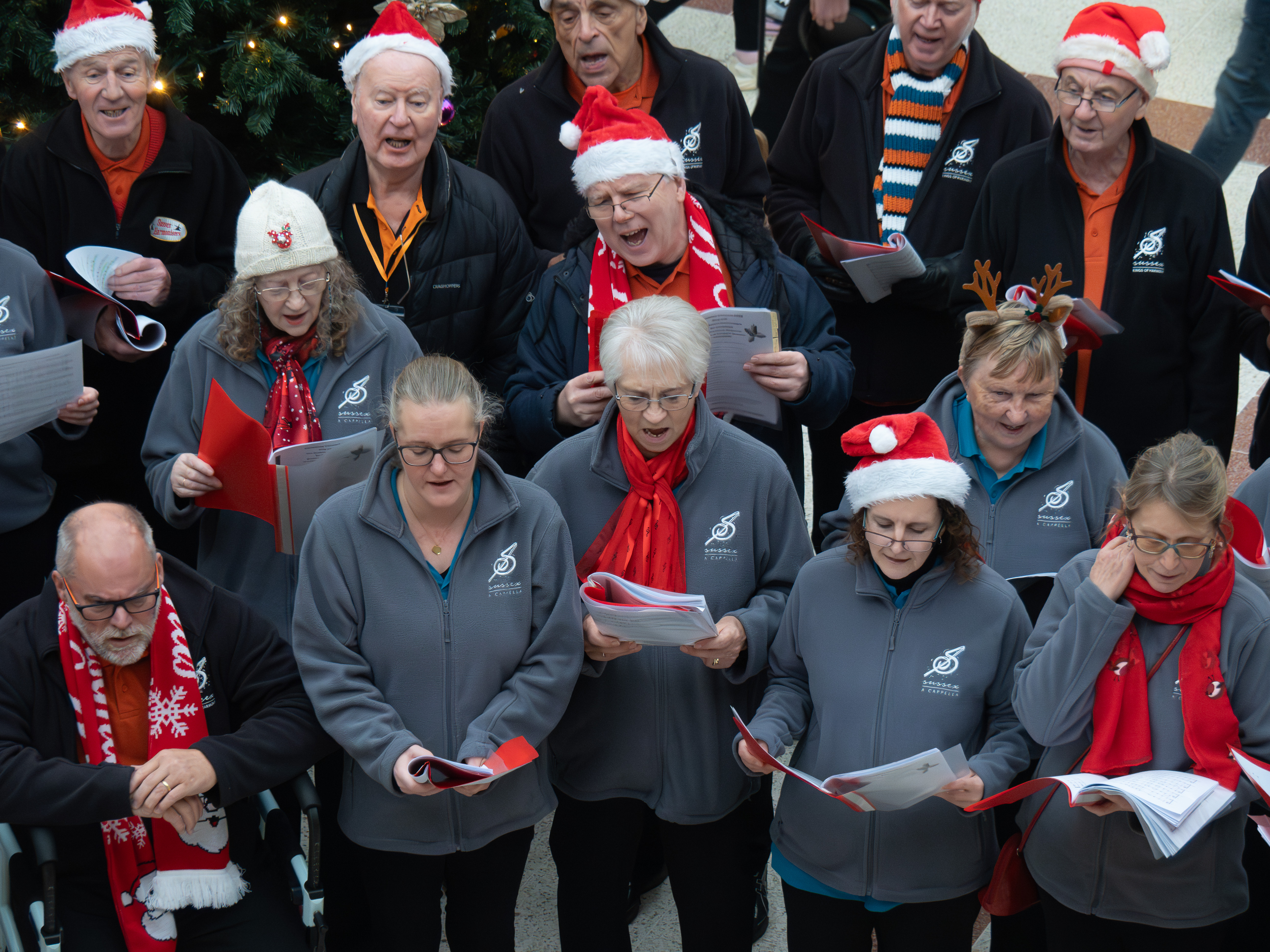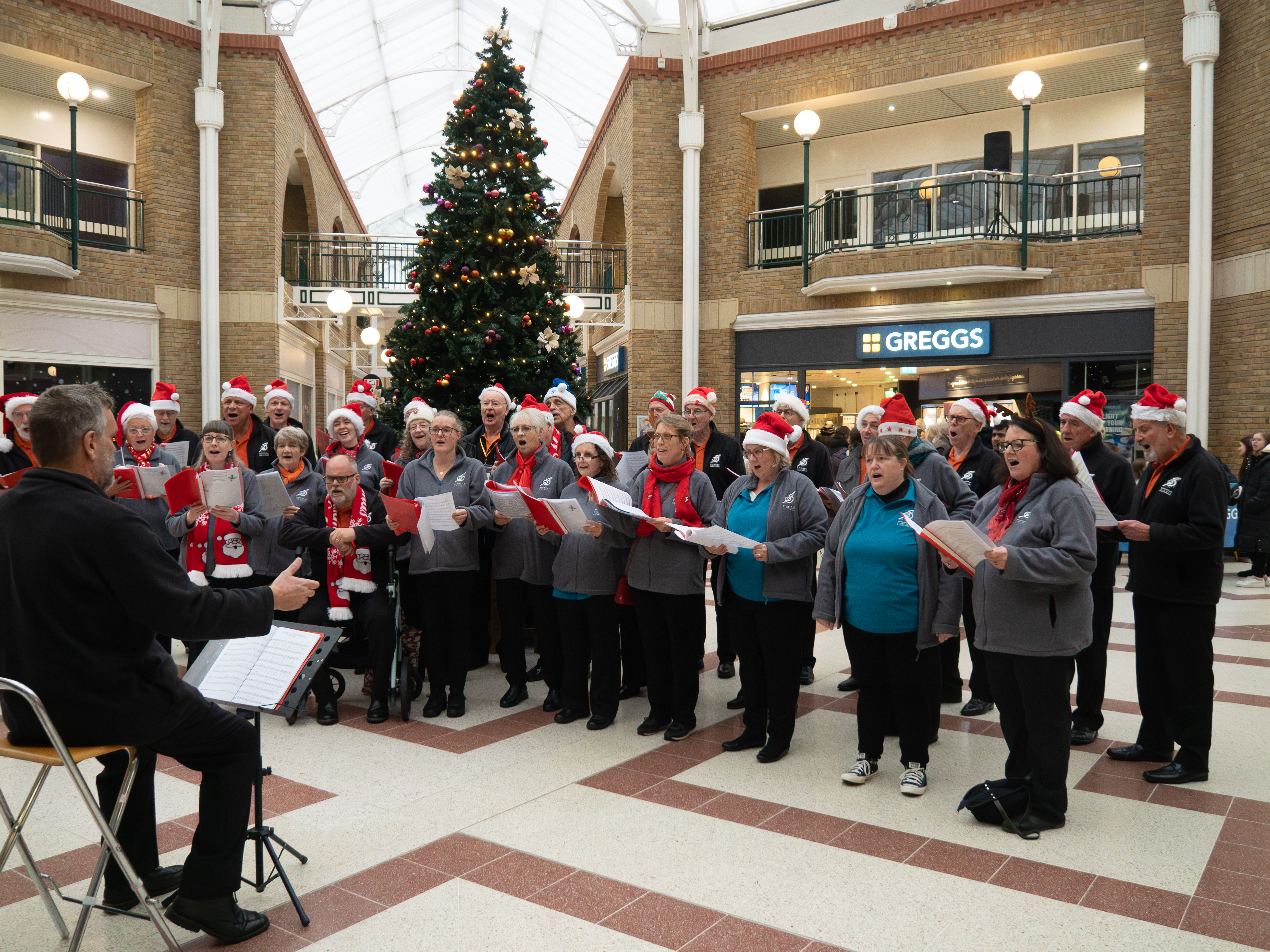 Plenty of Christmas cheer in the Market Place Shopping Centre in Burgess Hill yesterday, where the joint choruses were appearing as part of the day-long festive celebrations culminating with the switching on of the Christmas lights. Is November 22nd too early for Christmas? Humbug! Give us a twinkly tree and we'll give you a selection of carols and Christmas songs every time!