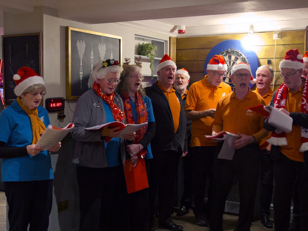 Christmas can start properly now! A large selection of members from both choruses (possibly because of the venue...) met up at the Top House in Burgess Hill on Saturday evening to sing a selection of Christmas carols and songs - sometimes inside the pub, sometimes out on the terrace. Festive fun all round, with the added bonus of Santa turning up!